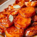 Sweet potatoes caramelized in a rich syrup, enhanced with butter, brown sugar, and warm spices for a comforting side dish.