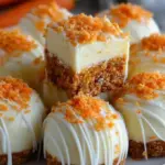 Delightful miniature treats combining the flavors of carrot cake and cheesecake for the perfect bite-sized dessert.