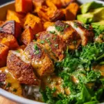 A wholesome Chicken and Sweet Potato Bowl that combines roasted sweet potatoes, juicy chicken, and fresh greens for a nutritious and satisfying meal.