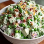 Embarking on a culinary journey brings us to the delightful Classic Creamy Pea Salad, a dish that charmingly straddles the line between simplicity and indulgence. Picture a vibrant assembly of emerald-green peas, their sweetness bursting forth with each tender bite. Bathed in a silky, luscious dressing, this salad seamlessly harmonizes a medley of flavors and textures—creamy, crunchy, and refreshingly herbaceous. As you delve into this dish, the aroma of fresh ingredients wafts through the air, inviting you to take a seat and savor every mouthful.