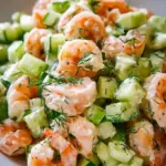 A refreshing Cucumber Shrimp Salad featuring tender shrimp, crisp cucumbers, and a creamy dressing accented with dill and lime.