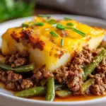A comforting and hearty casserole featuring layers of ground beef, potatoes, green beans, and melted cheese, perfect for family gatherings.