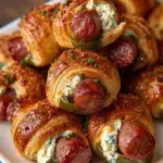 These savory treats never seem to last long at gatherings. Friends and family can’t help but return for more, eyes lighting up with anticipation. The balance of texture, from the buttery, flaky crust to the rich filling, creates a mouthwatering combination that perfectly satisfies cravings. Whether you serve them as starters at your next game day party, bring them to a potluck, or simply enjoy them on a cozy movie night, these Jalapeño Popper Pigs in a Blanket will soon become your go-to crowd-pleaser.
