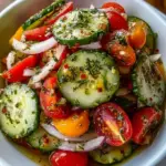 The moment you mix the vegetables with a peppery olive oil and tangy vinegar dressing, your senses ignite. You can practically taste the harmony of crunchy cucumbers, sweet tomatoes, and crisp onions melding together, each component enhancing the other in a delightful dance. It’s not just a side dish; it’s a celebration of summer’s bounty—perfect for barbecues, picnics, or simply savoring at home under a starlit sky.