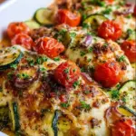 This dish dazzles with vibrant Mediterranean flavors that transport you instantly to sun-drenched shores and lush gardens. The chicken’s juicy tenderness pairs beautifully with the crispness of zucchini, providing a well-rounded meal that is both satisfying and nutritious. You’ll embrace the wholesome elements as they come together effortlessly, casting aside the notion of heavy, complicated meals.