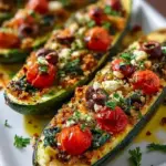 The blend of Mediterranean ingredients creates an explosion of taste that dances on your palate. Fresh herbs mingle playfully with briny olives and tangy feta cheese, while the wholesome quinoa forms a hearty base. As you take a bite, notice the contrast between the tender zucchini and the chunky texture of the filling, each piece a delicious echo of the vibrant culinary traditions of the Mediterranean. It’s no wonder that Mediterranean Stuffed Zucchini has claimed a beloved spot in kitchens everywhere.