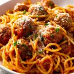 Spaghetti and meatballs isn’t just a dish; it’s a heartfelt tradition passed along through generations, a canvas for creativity in the kitchen and a reason to gather loved ones. The flavors collide beautifully, leaving you with a plate full of pure comfort. As you enjoy each delicious bite, take a moment to relish the joy of cooking and sharing this timeless classic. Bring this recipe to life in your kitchen, and watch as it transforms an ordinary meal into something extraordinary. Bon appétit!