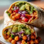A delightful and nutritious wrap filled with creamy avocado, hearty chickpeas, and vibrant spices, perfect for lunch or dinner.